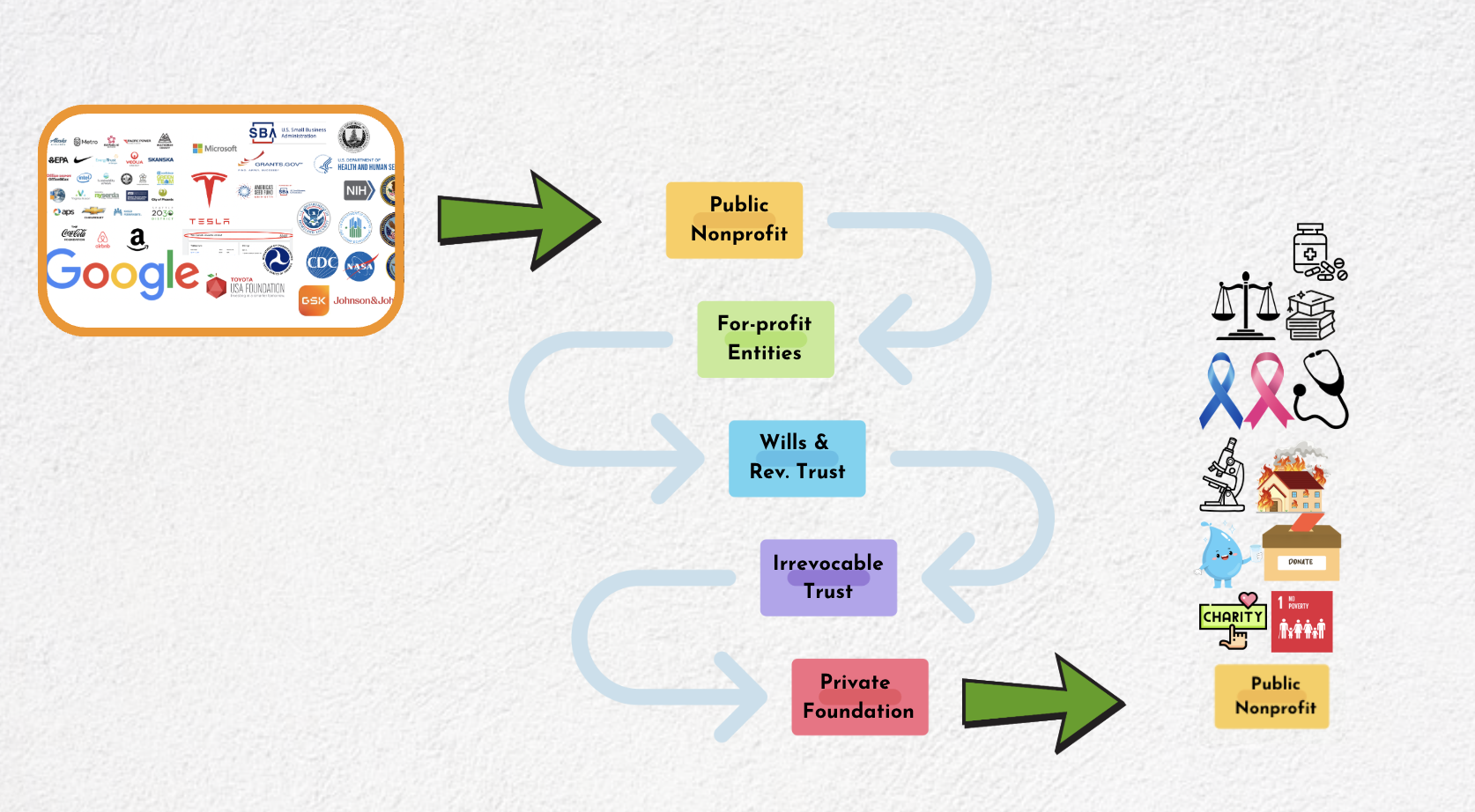 This is our core operating model, and the model that changed everything for us and for thousands of our clients - entrepreneurs and philanthropists from all walks of life. Here are some pictures of the "big picture" and how capital really flows in action: